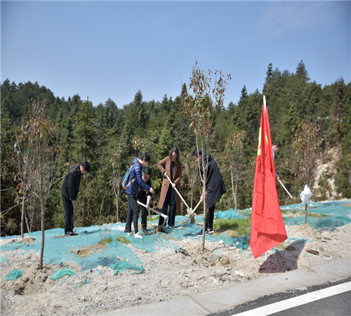三月的天岳幕阜山,春光明媚,万物勃发。在天岳幕阜山景区燕天公路沿线,参加活动全体人员挥舞着手中的锄头、铲子,在裸露的沙土上种上水杉、杜鹃、映山红等适合景区生长的树木。大家一起,分发树苗,铲土挖坑,覆土浇水,共植树200余棵。