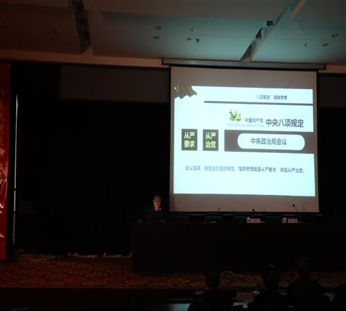 会上,刘润详细讲解了八项规定政策精神,分析了近年来违反八项规定的典型案例,并以自身多年的工作经验,对落实落细八项规定政策精神进行了深入的讲解和剖析。
